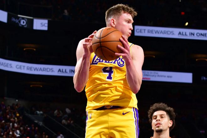 本场比赛中,湖人的侧翼新星道尔顿-克内克特(Dalton Knecht)的表现非常一般。克内克特全场出场22分08秒,投篮4中2,三分线外3中1,罚球1中0,得到了5分1篮板1助攻1盖帽的数据,还有1次失误和1次犯规,正负值为-11。克内克特在进攻端还是显得缺乏存在感,他的得分能力和投射能力都没有发挥出来,他也没有什么其他方面的才能,他在进攻端的整体贡献度显然是偏低了一些的。克内克特在防守端的表现也是比较糟糕的,他的个人防守能力也是没有非常有限的,他在防守竞争力方面也是令人担心的。至少在本场比赛中,克内克特在攻防两端的表现都令人失望,他在场上时球队的局面一塌糊涂,这也在很大程度上导致了球队的最终失利。
